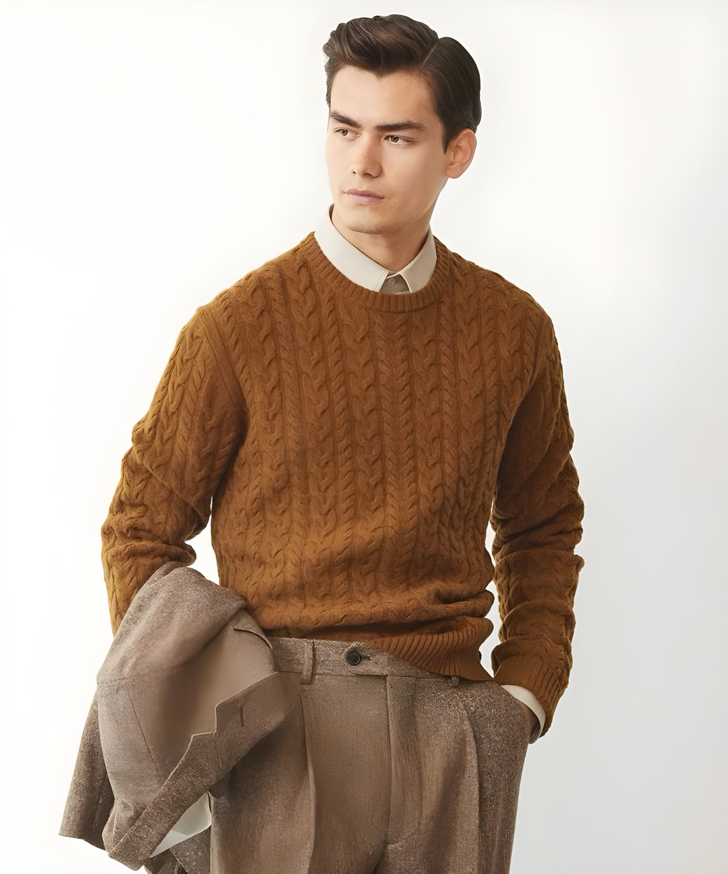 Pull Homme en Maille Torsadée | Col Demi-Zip et Style Intemporel